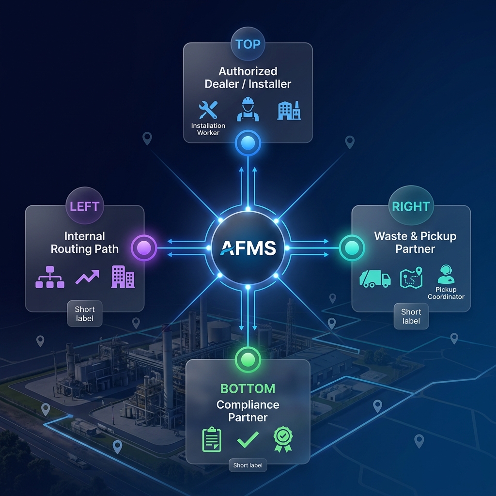 AFMS is sold, installed, commissioned, and supported through an ecosystem of authorized dealers and partner types.